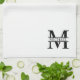 Monogramme personnalisé et cadeaux de nom avec monogramme personnalisé dans le style de police serif classique avec boîte de nom au milieu du monogramme.