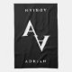 Un double nom glamour monogramme cadeau de serviettes de cuisine en noir et blanc pour lui. Élégant modèle de typographie avec retour à la lettre initiale. Créez vos propres cadeaux personnalisés pour les hommes et les femmes. Des cadeaux classiques pour l'anniversaire, la Fête des pères et plus encore. Aussi idéal pour une fête de mariage.
