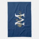 Linge De Cuisine Monogramme Nom initial Script Marine Blanc Or