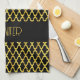 Linge De Cuisine Monogramme or et noir quatrefoil motif