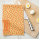 Linge De Cuisine Monogramme Orange Motif diamant à trois tons