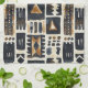 Décor de tissu de boue africaine peint à la main, aux formes géométriques audacieuses dans les tons terre de noir, marron et crème.