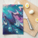 turquoise et rose, art abstrait, personnalisation monogramme pour un cadeau customisé ou pour soi-même. Linge de cuisine.