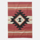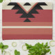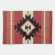 Aztec ethnic bohemian pattern with geometrical shapes in red, orange, grey and black colors on striped background