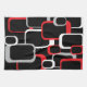 Motif géométrique cool de carrés rouges, blancs et gris sur un arrière - plan noir