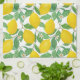 Design décoratif d'un motif de citrons jaunes juteux sur des branches avec des feuilles verts et des fleurs blanches délicates sur un arrière - plan blanc. Vous pouvez modifier la couleur de l'arrière - plan en cliquant sur le bouton "Personnaliser" puis sur l'inscription "Cliquez pour customiser plus loin".
