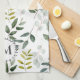 Linge De Cuisine Motif d'aquarelle Feuille vert monogramme
