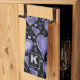 Purple Hearts Motif Dessin Monogramme serviette de cuisine. Coeurs violets dessinés à la main sur arrière - plan noir. Ajoutez votre monogramme et votre nom.