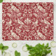 Serviette de cuisine dans un William Morris, papier peint Art Nouveau design de faisans et lièvres sertis entre feuilles, vignes et fleurs - crème / blanc hiver sur un arrière - plan rouge chinois profond