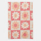 Linge De Cuisine motif de fleurs rétro À damiers Peach Fuzz