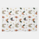 Motif avec illustrations de poulets et poussins avec chapeaux santa, écharpes, saints, et sucre de canne