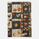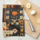 Cette serviette de cuisine est décorée d'un motif en patchwork d'inspiration artisanale d'art folklorique avec une chaude palette automnale d'orange, brun, or, noir et crème. Les blocs présentent des motifs rustiques tels que des citrouilles, des oiseaux, des étoiles, des coeurs et des vignes tourbillonnantes, le tout disposé dans une structure traditionnelle en blocs de courtepointes. Avec son look en tissu vieilli et en détresse, ce motif saisit le charme de l'Americana primitive et les thèmes saisonniers de la récolte. Parfait pour la décoration d'automne, le style rustique des fermes, l'artisanat de campagne et les modèles d'inspiration folklorique qui fêtent l'esprit cosy de l'automne.