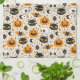 Ce design présente un motif d'Halloween mignon et fantaisiste rempli d'un assortiment délicieux d'icônes éffrayantes classiques. L'arrière - plan est d'une couleur crème pâle, offrant un contraste doux avec les motifs audacieux. Le motif comprend des lanternes jack-o-lanternes ludiques avec différentes expressions, des chats noirs aux yeux jaune vif, des crânes souriants et des chauves-souris aux ailes orange. Les araignées, les lunes de croissant, les étoiles, les champignons et les symboles magiques sont éparpillés dans toute l'atmosphère enchanteresse d'Halloween. La palette de couleurs est composée de noirs, d'oranges et de jaunes, créant un design animé et festif, parfait pour les décorations d'Halloween, les vêtements ou les thèmes de fête. L'ensemble est amusant et charmant, idéal pour célébrer la saison éffrayante avec une touche de douceur.