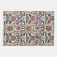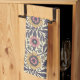 Cette serviette de cuisine présente des fleurs et des feuilles dans les tons rose et bleu sur un arrière - plan crème.