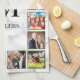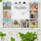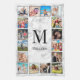 Créez votre propre serviette de cuisine 16 collage photo personnalisée avec vos images personnalisées, monogramme et nom sur un élégant arrière - plan en marbre blanc élégant.