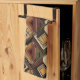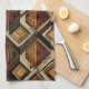 Towel de cuisine à motif rayure géométrique chaud avec des diamants, des zigzags et des bandes verticales texturées d'inspiration tribale dans des tons terreux marron, terracotta, beige et charbon. Un design bohème cosy idéal pour les amateurs de décoration sud-ouest, les fans de style rustique et tous ceux attirés par l'esthétique terreuse et artisanale.
