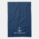 Nautical Custom Boat Name blanc ancre marine bleu cuisine serviette. Personnaliser texte voile nautique texte, nom du capitaine. Nom du bateau, magasin, nom commercial. Design minimaliste, simple, élégant, idéal pour les navigateurs, les plaisanciers, la voile et la navigation de plaisance!