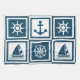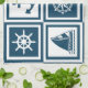 Design à thème nautique avec voilier, voilier, boussole et décoration d'ancre en carré rayé blanc et bleu
