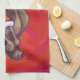 Linge De Cuisine Noel de Chien À La Hache Sur Rouge