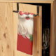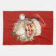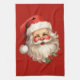 Une serviette de cuisine avec une joyeuse illustration d'un Père Noël de style vintage aux joues rouges roses. portant son chapeau de Père Noël rouge classique et son grand ours blanc. Un spring de saint ajoute à l'esprit festif de fête de ce design.