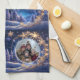 La saison de Noël - un temps plein d'émerveillement, de joie, d'espoir, d'attentes et de surprises. Cette serviette de cuisine est munie d'un flocon de neige doré tourbillonnant dans le ciel bleu de la nuit au-dessus de la forêt d'hiver avec une image de votre famille, animal de compagnie ou ce que vous aimez! Magnifique cadeau pour grand-mère ! Photo et texte personnalisés.