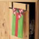 Un arrière - plan rayé vert et or, des bandes rouge vif, et un bel arc rouge et blanc avec des sprigs à feuillage persistant habille cette serviette de cuisine comme un cadeau de Noël. Cute, fun, festif, parfait pour votre maison de vacances !