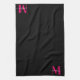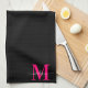 Linge De Cuisine Noir & Gras Hot Pink Monogramme Nom initial Famill