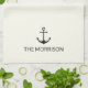Nautical Custom Boat Name noir ancre ivoire serviette de cuisine. Personnaliser texte voile nautique texte, nom du capitaine. Nom du bateau, magasin, nom commercial. Design minimaliste, simple, élégant, idéal pour les navigateurs, les plaisanciers, la voile et la navigation de plaisance!