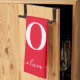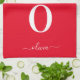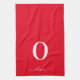 Linge De Cuisine Nom du script Monogramme Personnalisé Rouge Et Bla