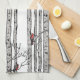 Cette serviette de cuisine moderne présente des bouleaux dessinés à la main avec des oiseaux cardinaux rouges perchés sur des branches à l'encre noire, avec ombrage fait en croix, contre un élégant arrière - plan blanc.