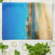 Le ciel bleu profond est rempli d'oiseaux blancs, d'oiseaux de mer qui atterrissent et décollent d'un petit bar de sable à la plage de Siesta Key, sur la côte du Golfe de Floride. Cette photo originale de ZoeSPEAK, d'une belle scène de Floride sur cette serviette de cuisine, égayera n'importe quel espace avec ses couleurs joyeuses.