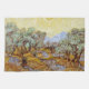 Oliviers au ciel et au soleil jaunes. Vincent Willem van Gogh. Paysage dans les tons jaunes chauds. Grand jardin avec de grands arbres. Montagnes dans l'arrière - plan. Il y a un grand soleil brillant dans le ciel. Reproduction d'oeuvres d'art célèbres dans le domaine public.