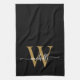 Torse moderne élégant noir et or Monogramme Initial Nom Signature Écriture personnalisée Serviette de cuisine personnalisée. Ce design présentant votre prénom dans un joli style lettrage à main levée avec typographie (ou calligraphie) avec monogramme initial en or et blanc sur fond noir. Ceux-ci sont faciles à personnaliser. Cadeau de pendaison de crémaillère élégant et féminin, également pour un anniversaire, la fête des mères, un mariage, une douche de mariée et c'est pour la fille qui aime les choses uniques et minimalistes épurées.