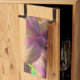 Les orchidées fleurissent à nouveau dans le jardin, sur la photo originale de ZoeSPEAK sur cette serviette de cuisine. Les fleurs, émergeant d'une tige verte incurvée, ont des centres violets qui se fondent en jaune au bout des pétales. L'arrière - plan en bois naturel décline les formes et les couleurs sculpturales.