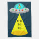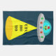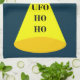 Cette superbe serviette de cuisine de Noël est ornée d'une image art numérique d'un vaisseau spatial alien décoré de lumières de Noël aux couleurs vives. A l'intérieur de l'OVNI qui donne par la fenêtre, il y a un alien vert aux yeux noirs portant un chapeau festif de Père Noël. Il y a un cône de lumière venant de la soucoupe volante. L'ombre d'un message est projetée vers la Terre. Le message dit Ho Ho UFO. Salutations de vacances de l'espace pour tous les Terriens.