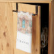 Pain d'épices Nom de la maison Mangez Boire Boire Soyez Joyeux Vacances Une maison de pain d'épices à la bohème fantaisie dans les tons crèmes, roses et bleu d'hiver pour votre cuisine de Noël! Personnalisez facilement le texte au besoin, y compris votre nom.