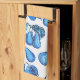 Serviette à thé en imprimé de poires et de feuilles épars, adaptée de l'art botanique vintage, numériquement rehaussée et colorée, en indigo profond et tons de bleu denim sur blanc