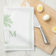 Cette serviette de cuisine amusante monogrammée présente un palmier côtier en vert et blanc classique. Personnalisez le monogramme avec votre choix d'initiales.