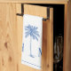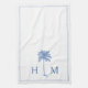 Cette serviette de cuisine moderne d'inspiration côtière dispose d'un palmier bleu sur blanc avec un monogramme que vous pouvez personnaliser avec votre choix d'initiales.
