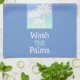 Lavez vos palmiers avec cette ambiance côtière amusante, un palmier tropical moderne design de trois silhouettes d'arbre blanc contre un arrière - plan bleu et vert ombragé sur une serviette bleue. Obtenez de bonnes vibes chaque fois que vous regardez cette serviette avec un rappel amusant de se laver et sachant que les palmiers symbolisent la paix, l'abondance et le succès. Vous pouvez changer la couleur de l'arrière - plan, si vous le souhaitez, aussi!. Pour plus de palmier, maison de plage, décoration de maison de feuillage tropical, visitez mon magasin : Zazzle.com/BlueLilyBella