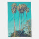 Serviette de cuisine avec une belle photo. De grands palmiers avec de longues troncs maigres devant un beau ciel vert. Jeu de couleurs rétro. Détente et détente.