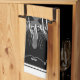 Cette serviette de cuisine Bon Appetit a un design d'ancienne enseigne de cuisine avec la forme classique du étiquette en noir, starburst gris, argenterie croisée et le dicton "Bon Appetit" en blanc imprimé sur le dessus. Cette serviette fait un grand cadeau de chauffage maison pour toute personne avec une cuisine noire et blanche.