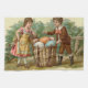 Serviette de cuisine victorienne vintage de Pâques avec un garçon offrant un panier rempli d'oeufs de Pâques à sa lassie!