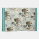 Serviette de cuisine de 16" x 24" avec une image de vignettes brunes de tout Paris sur un arrière - plan floral bleu et crème. Voir serviettes assorties, serviettes en papier, set de table en tissu, set de table en papier et dessous de verre. Voir toute la collection Cancan Kitchen Towel dans le document FOOD/BEV| Section Linens.