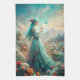 Une femme aux cheveux turquoise parmi les fleurs