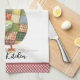 Une mignonne serviette de cuisine à thème de poulet avec patchwork coloré puis accentuée d'une bordure rouge en vichy style à carreaux. Personnalisez-le avec votre nom ou autre légende. Voir d'autres éléments de décoration de cuisine dans cette même collection de design.