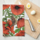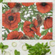 Linge De Cuisine Pavot rouge et brindilles, feuilles verts sur blan