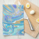 Linge De Cuisine Pearlescent Aqua & Gold en marbre liquide
