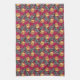 L’oeuvre originale de ZoeSPEAK sur cette serviette de cuisine est un motif fait à partir de l’illustration originale de Zoe d’une pêche qui vient d’être cueillie dans l’arbre, avec des feuilles verts doux toujours attachés. Le fruit jaune doré, dont les courbes sont orangées, est disposé en rangs verticaux le long de bandes verticales de blanc et de rose pêche. L'arrière - plan du motif de papier peint est rouge terre cuite, ce qui crée un tissu chaleureux et coloré dans une ambiance champêtre.