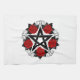 Pentagramme noir avec motif, décoré de fleurs, roses rouges avec feuilles sur arrière - plan blanc. Style tatouage.